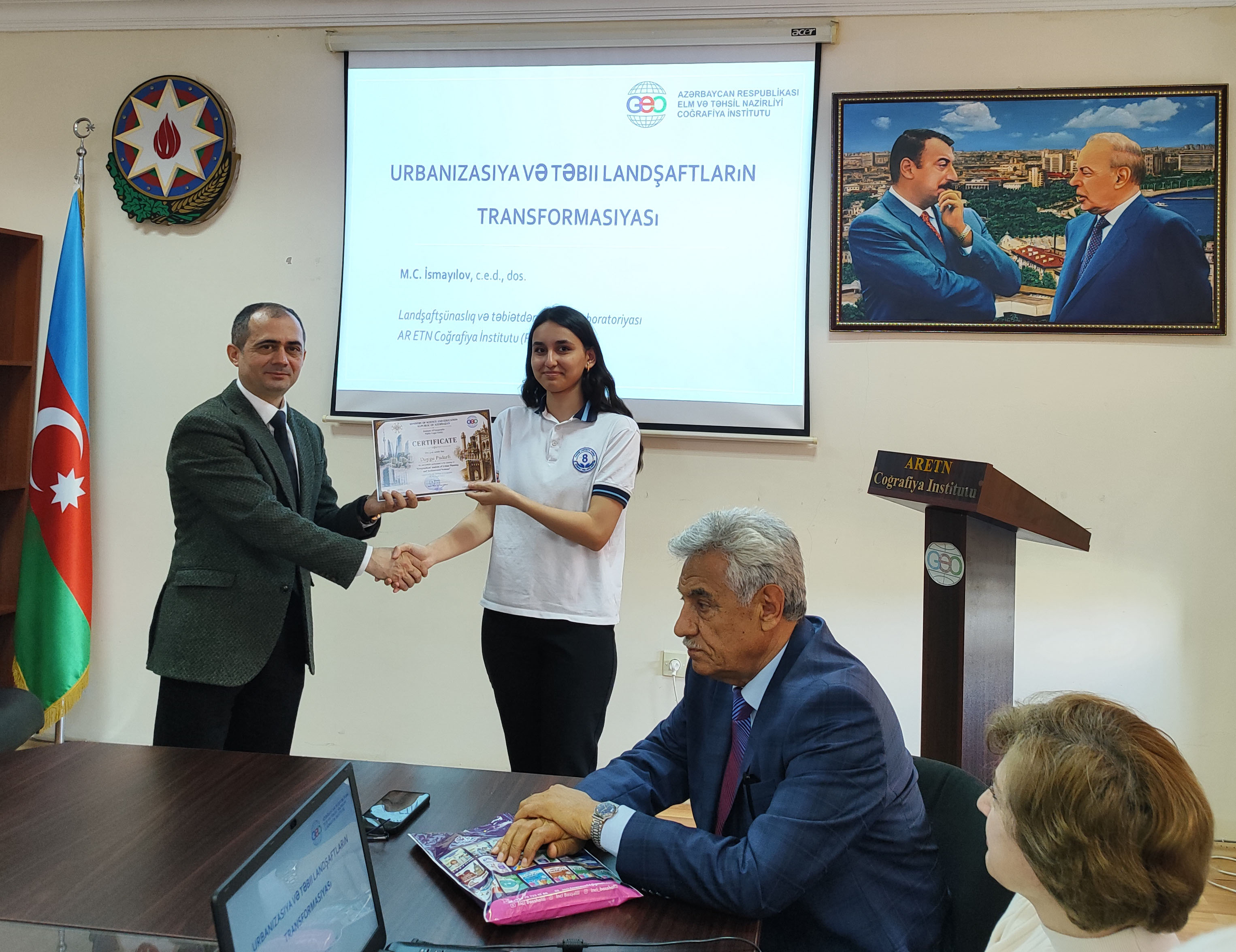 Tədbirin sonunda məktəblilərə Coğrafiya İnstitutunda keçirilən maarifləndirici görüşdə fəal iştirak etdiklərinə görə sertifikatlar təqdim olunub. Şagirdlər institutun fəaliyyəti ilə yaxından tanış olmaq, alimlərlə ünsiyyət qurmaq və onları maraqlandıran suallara cavab almaq imkanı əldə ediblər. Görüş iştirakçılar tərəfindən böyük maraqla qarşılanıb.